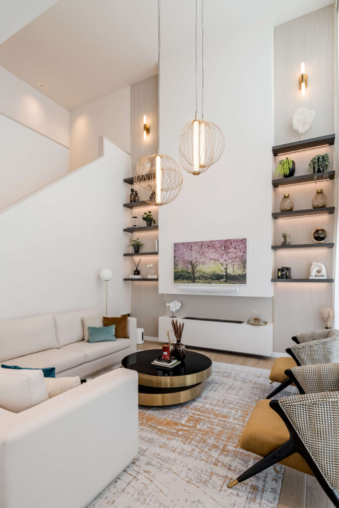 - Luz indirecta en el área de sofás para un ambiente acogedor.